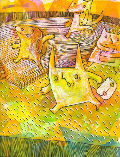 Evo ilustracije za ovonedeljni Illustration Fraiday. Iako nije baš nova, mislim da je dobar odgovor na temu. Inače, u pitanju je skica kadra iz stripa o biologičarki, zapravo jedna od početnih ideja. Ova "deca" su njeni đaci, a trče zato što kasne na čas biologije...:-)