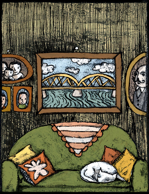 ( Ova ilustracija je zapravo kadar iz stripa koji sam radila za specijalno izdanje Stripburgera, sa temom "Mostovi". To je priča o Starom trsteničkom mostu, o tome kako je bio lep i kako je srušen)