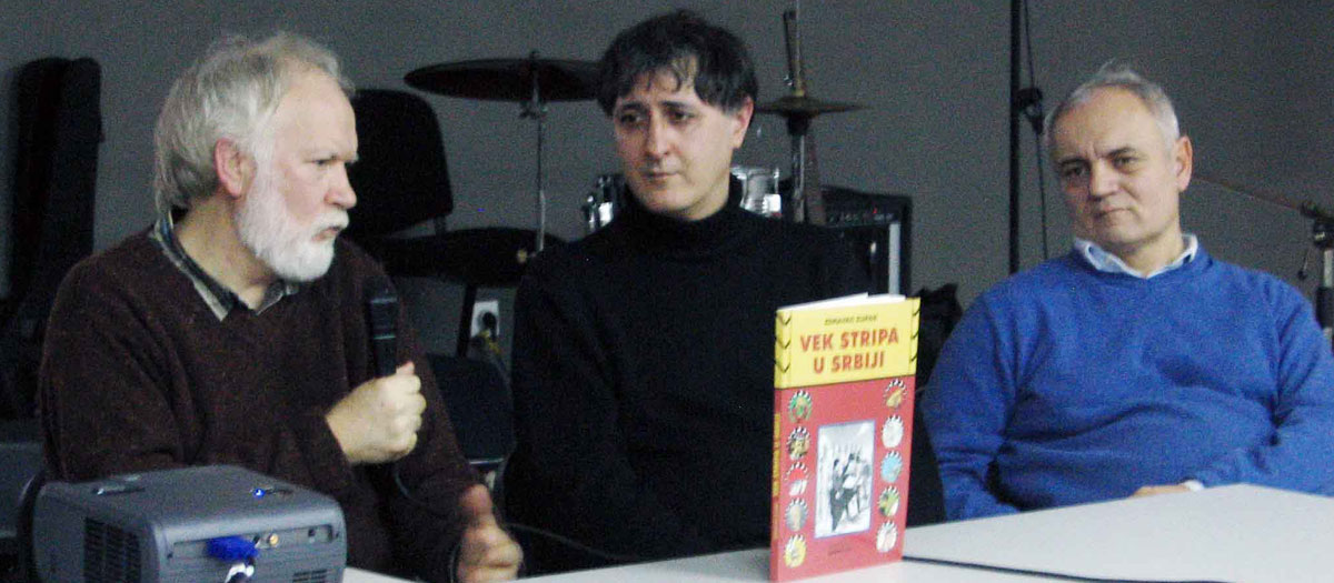 Ne tako nova vest, ali i te kako važna: 7. decembra u Izabinskom prostoru Kulturnog centra Pančevo, promovisana je knjiga Vek stripa u Srbiji. O ovoj obimnoj, bogato ilustrovanoj i lepo dizajniranoj monografiji, govorili su njen autor Zdravko Zupan, zatim priređivač i prevodilac Aleksandar Zograf i recenzent Vasa Pavković. Bila je to fina i zanimljiva priča sa slajd projekcijom, kratka ali sasvim dovoljna da svaki stripofil koji drži do sebe (i istorije) smesta poželi ovu knjigu u kolekciji. Ja je već imam i preporučujem!