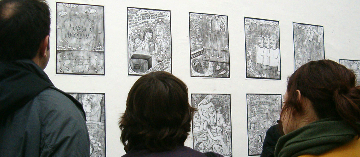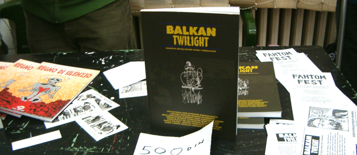 Inače, Balkan Twilight je, da citiram urednika izdanja, "omnibus strip antologija koja donosi dvadeset i tri grafičke priče nastale u kreativnim parovima koncipiranim po principu pisac+strip crtač". Jedna od 23 priče je i poema Dragane Mladenović - Povest o Jugoslavu, koju sam ja sa zadovoljstvom pretočila u strip! Dve table, od ukupno 11, objavljujem, evo, gore (klik na sliku), a ostale čitajte u knjizi kada je nabavite :-) Ima je u Beopolisu ili kod priređivača.