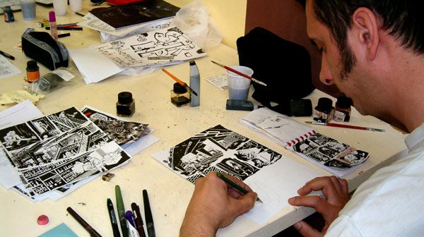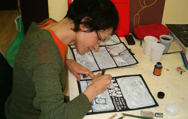 So, Irena invited Sonja Gašperov, Matija Pisačić, Igor Hofbauer, Mirosalv Nemeth and me to participate in the group exhibition, to share our artistic experience and enjoy drawing comics together. It was, as Irena put it, the real comics therapy! The last day of the workshop, Krešimir Zimonić, the art director of Zagreb film joined us and we all went to the town cinema hall to watch animated films he selected.